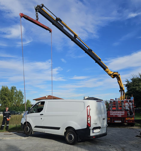 Am 04.06.2025 um 17:20 Uhr wurde die Feuerwehr Großkrut zur Bergung eines Fahrzeuges von der Polizei angefordert. Das Fahrzeug wurde mittels Kran geborgen, abtransportiert und gesichert abgestellt.